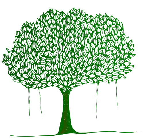 This features a large tree with green leaves and branches. It is depicted in black and white, giving it an artistic and timeless appearance. The tree has a prominent trunk that stands out from the rest of the branches. The leaves are scattered throughout the tree, creating a sense of depth and dimension to the drawing. Overall, this simple yet elegant image captures the beauty of nature in its purest form.