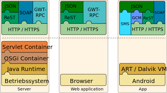 This displays a diagram that shows the different layers of a web application. There are five main sections in the diagram, each representing a layer within the web application. These layers include the server, browser, and mobile app. The first section is the server, which includes various components such as the operating system, database, and web server. The second section is the browser, which consists of different types of browsers like Chrome, Firefox, and Safari. The third section is the mobile app, which can be found on devices like smartphones and tablets. Finally, the fourth section is the operating system, which is responsible for managing the computer's hardware resources. In addition to these main sections, there are several smaller icons within each layer that represent specific components or features of the web application. These icons help to provide a clear visual representation of the various elements involved in creating and maintaining a web-based system.