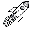 This features a white rocket in mid-flight, with three visible wings and one window. It is an illustration of the rocket, which appears to be a cartoon or stylized version rather than a realistic representation. The rocket's design suggests that it may have been drawn by hand, giving it a unique and artistic appearance.