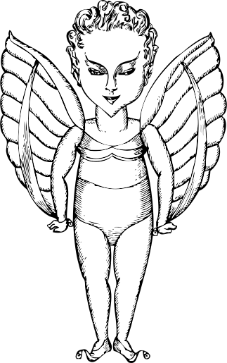 Tags: colouring book, creature, externalsource, imp, myth, sprite, uspto, winged, angel, fairy, drawing, artwork, one winged