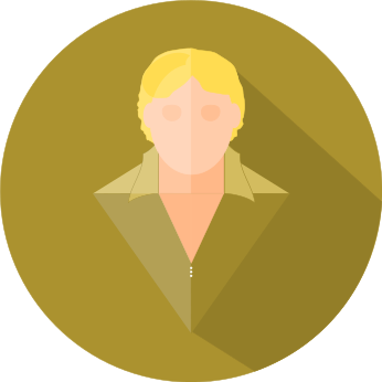 This features a round, yellow circle with a man's face in the center. The man has blond hair and is wearing a brown jacket. He appears to be looking directly at the viewer, giving off an impression of being attentive or engaged. The man's expression seems somewhat serious, which adds depth to his appearance.