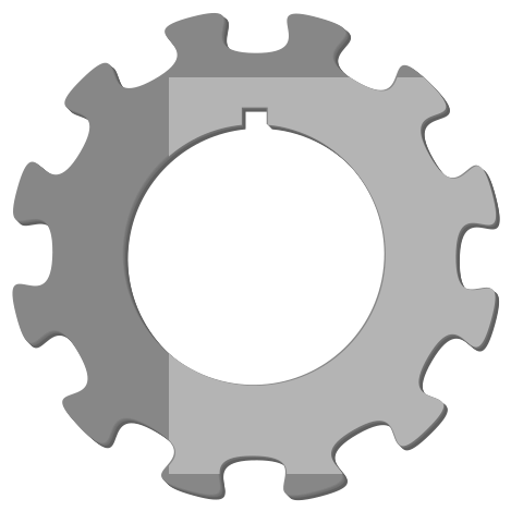 This features a close-up of a gear with a white background. This gear is the main focus of the image, and it appears to be a large, round object. The gear has a slightly blurred edge that gives it a rounded appearance, making it look more like a 3D object rather than a flat surface. The close-up view of the gear highlights its intricate details, showcasing its design and craftsmanship.
