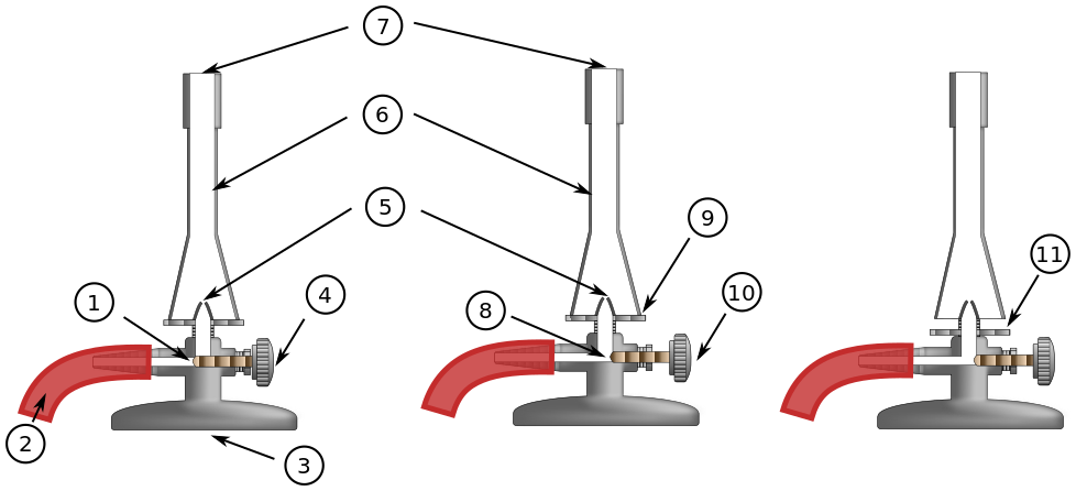 This displays a series of three diagrams, each showing the inner workings of a device. These diagrams are labeled with numbers and arrows to provide clear explanations of their components. The first diagram is located on the left side of the image, while the second one is in the middle, and the third one is positioned towards the right side. Each diagram features a combination of red and white elements, which help to distinguish between different parts within the device. Overall, this visual representation provides an insight into the intricate mechanisms of these devices.