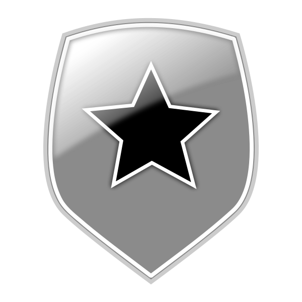 This features a silver shield with a black star on it. The shield is prominently displayed in the foreground, occupying most of the frame. The star is positioned towards the center of the shield and stands out against the silver background. This design gives the impression of a protective or decorative element, possibly representing a symbol or logo.