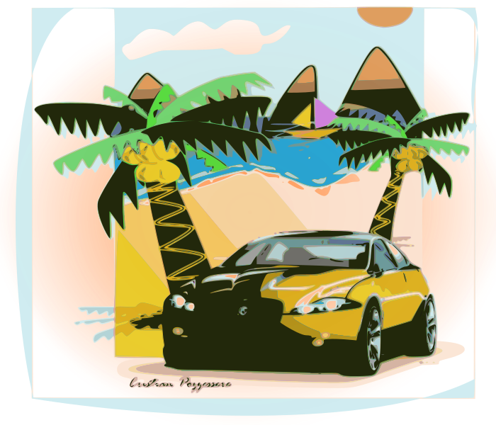 Tags: dream car, vetor inkscap, desenho, car, ferrari, maserati, lamborghini, dinhochiz, cristian pzzessere, ilnanny, icone, png, svg, yellow, palm tree, beach, sun