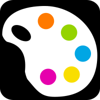 This features a painting app icon with a palette of colors. The icon is black and white, but the colors are represented by various colored circles that make up the palette. There are sixteen different colored circles in total, each representing a specific color. These colors include red, blue, green, yellow, orange, purple, and more. The app's logo is displayed prominently on the icon, making it easily recognizable as an art-related application.