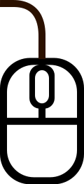 This features a black and white computer mouse, which is the primary focus of the picture. It appears to be an icon or symbol representing a computer mouse rather than an actual physical object. The mouse has a cord attached to it, indicating that it may be connected to a device for use. Overall, the image presents a simple yet recognizable representation of a computer mouse.