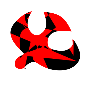This features a red and black geometric design, which appears to be an abstract representation of a fish. The fish is depicted in the shape of a letter "S" with its body extending outwards from the center. The intricate pattern on the fish's body adds depth and complexity to the overall design. This unique artwork could serve as a decorative piece or a conversation starter, showcasing creativity and craftsmanship in its execution.