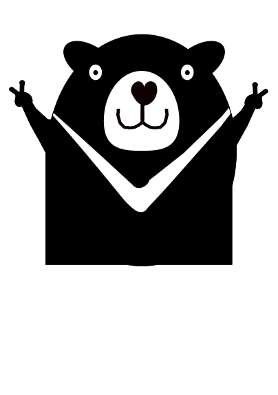 This features a black and white drawing of a bear giving the peace sign. The bear is positioned in the center of the picture, with its arms raised above its head as if it's waving or showing off. The drawing has a playful and friendly appearance, making it an appealing design for various purposes such as stickers, posters, or greeting cards.