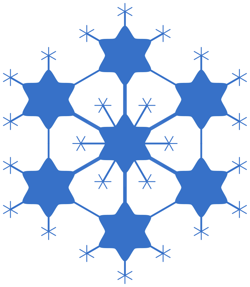 This features a blue and white snowflake design with numerous small circles in the center. These circles are arranged in various positions, creating an intricate pattern that covers most of the snowflake's surface. The overall appearance is quite captivating and visually appealing. This design could be used for decorative purposes or as a unique artistic piece to showcase creativity and attention to detail.