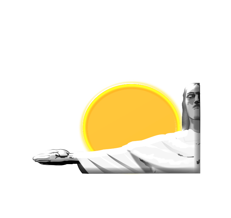 This features a white illustration of Jesus with his arms raised, standing in front of the sun. This artistic representation is likely meant to symbolize the resurrection of Christ during Easter. The sun's rays are depicted as yellow, which adds warmth and brightness to the scene. The overall composition creates a sense of hope and spirituality, with Jesus being the central figure in this religious-themed artwork.