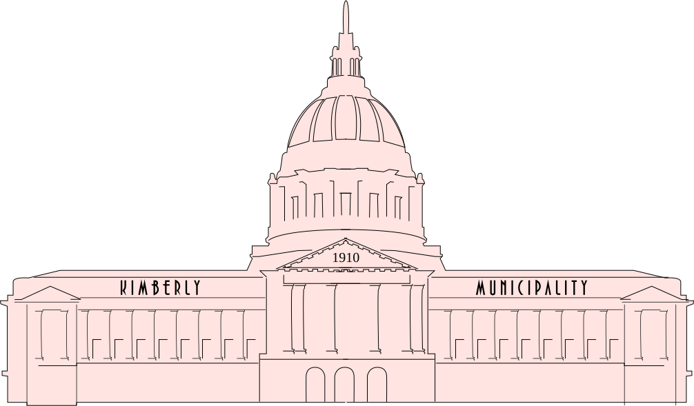 This features a large, pink building with the words "Kimberly Municipality" written on it. This building is likely a city hall or municipal building, as indicated by its size and prominence in the scene. The architecture of the building appears to be quite ornate, with a tall dome atop the structure. The overall color scheme of the image is predominantly pink, giving the building an elegant and inviting appearance.