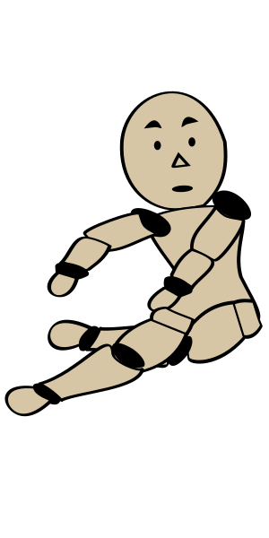 This features a cartoon-like drawing of a person sitting on the ground. The figure is positioned in such a way that it appears to be looking up, possibly at something above or behind it. The character has an interesting design with multiple limbs and joints, giving it a unique appearance. The overall scene is quite simple, focusing primarily on the cartoon person's pose and expression.