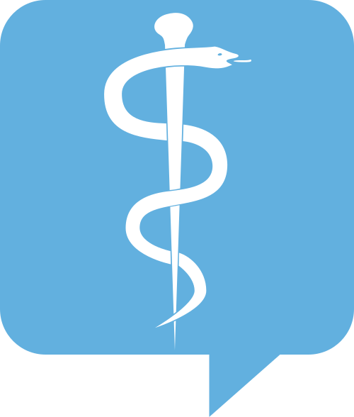 This features a blue and white logo of the Rod of Asclepius, which is an ancient symbol for medicine. The logo consists of a snake wrapped around a staff with a single serpent head, all set against a blue background. This iconic symbol represents healing and healthcare, making it a fitting representation for medical professionals or institutions.