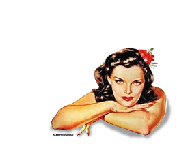 This features a woman with brown hair, wearing a red flower in her hair. She is laying on her crossed arms and appears to be posing for the camera. The woman has an old-fashioned look, which adds a sense of nostalgia to the scene. The poster itself seems to be a vintage piece, possibly from the 1940s or earlier.