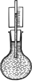 This features a thermometer, which is used to measure the temperature of liquids. It has a long metal stem and a glass tube that contains liquid. The thermometer is designed to be inserted into the liquid being measured, allowing it to accurately gauge the temperature changes within the substance. This type of instrument is commonly used in scientific experiments and everyday life for monitoring the temperature of various liquids or gases.