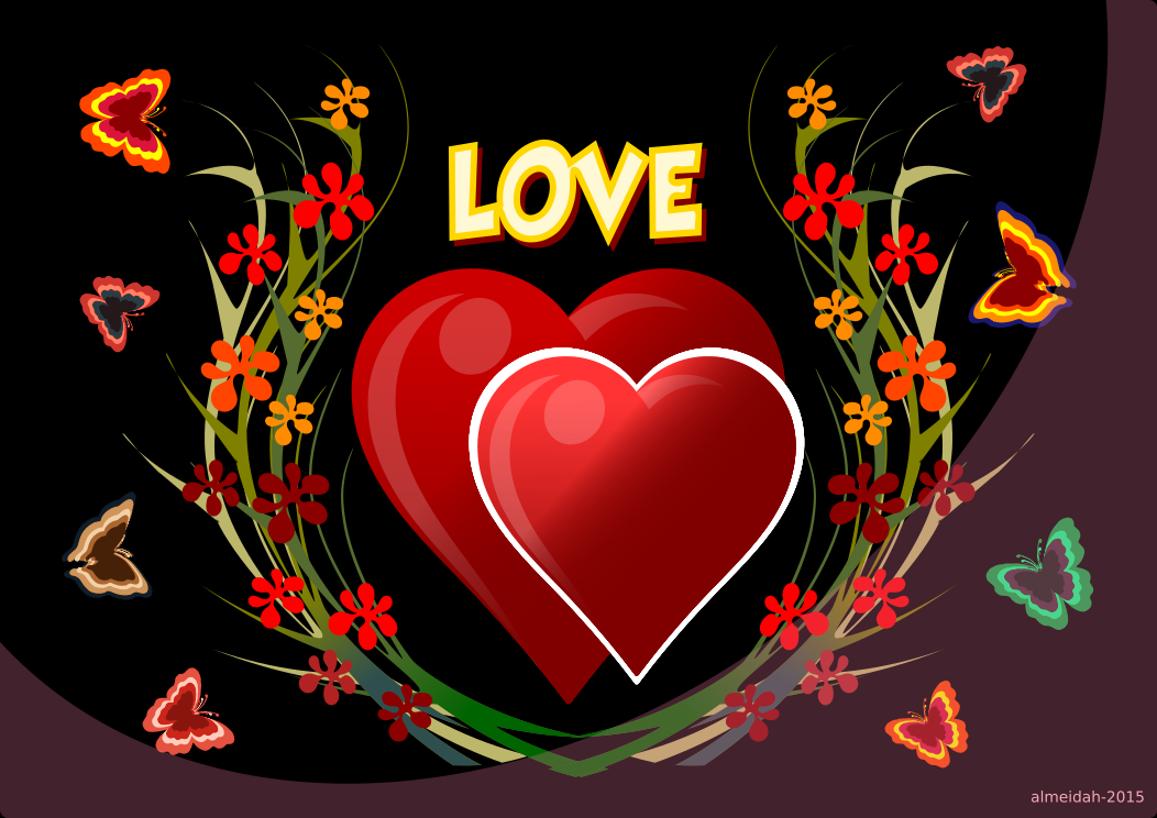 This features a red heart with the word "love" written on it, surrounded by various flowers. These flowers are scattered throughout the scene in different sizes and colors, creating a vibrant and lively atmosphere. In addition to the heart and flowers, there is also a butterfly present in the background, adding an extra touch of beauty to the overall composition. The combination of the red heart, colorful flowers, and the presence of a butterfly creates a warm and inviting scene that conveys feelings of love and affection.