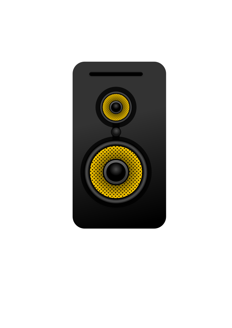This features a black speaker box with yellow dots on it. It is placed against a white background, making the speaker stand out prominently. The speaker has two speakers in one, which are positioned at different angles to provide an optimal listening experience. This design allows for better sound distribution and enhances the overall audio quality. The black and yellow color scheme of the speaker adds a touch of modern style to the overall appearance.
