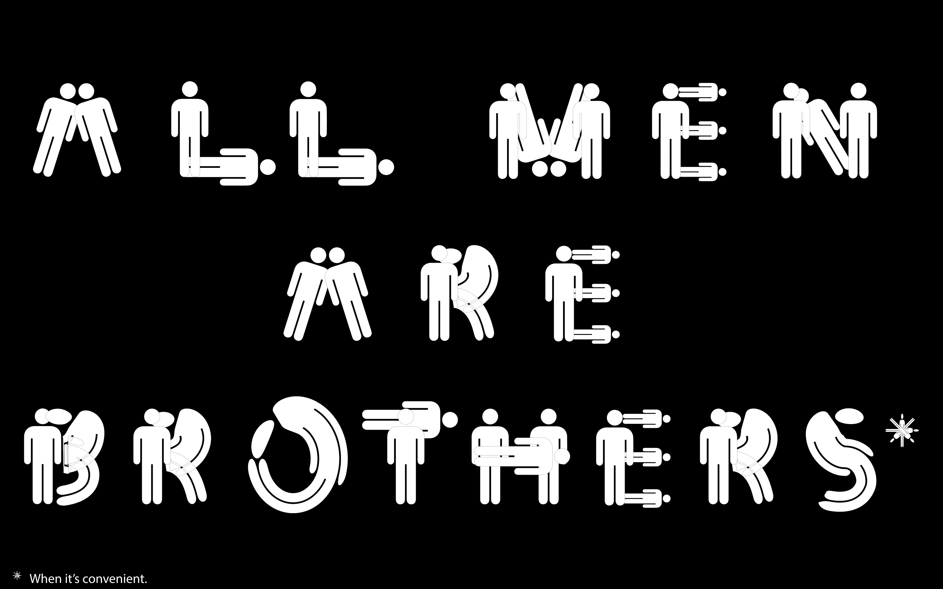 This features a black sign with white text that reads "all men are brothers." The words are shaped from human body silhouettes, creating an interesting visual effect. There are several people depicted in the sign, each representing a different part of the phrase. The arrangement of these figures creates a sense of unity and connection among them, emphasizing the message of brotherhood.