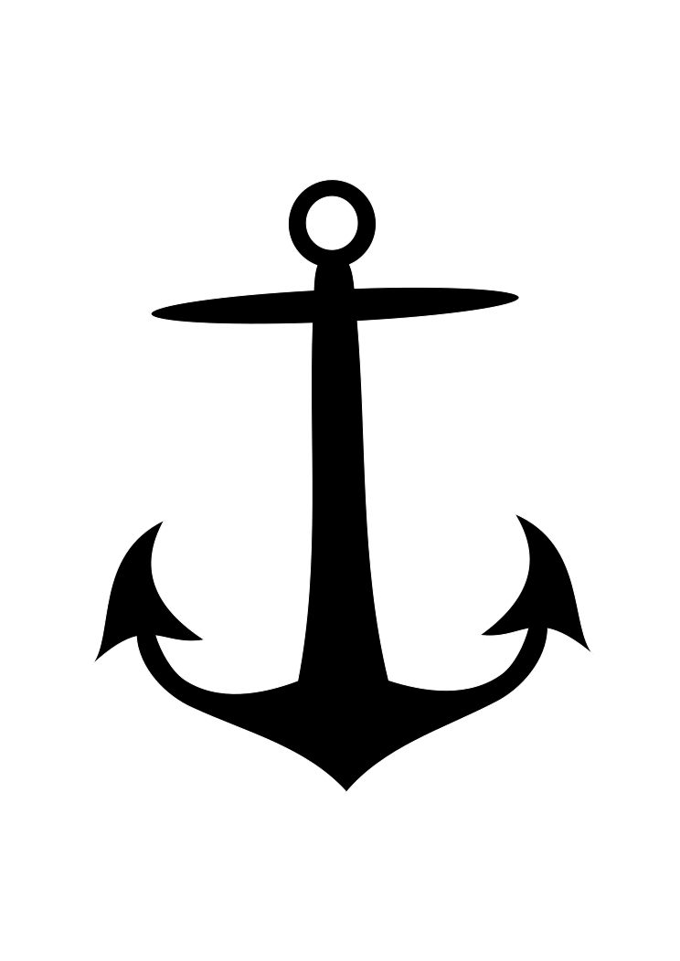 This features a black and white anchor design, which is the central focus of the picture. The anchor has a unique shape with an oddly shaped top, making it stand out from typical anchors. It appears to be a symbol or logo, possibly representing a specific organization or theme. The anchor's design is simple yet distinctive, and its black and white color scheme adds a classic touch to the image.