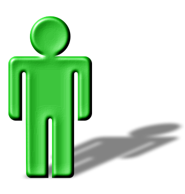This features a green stick man figure with a shadow cast behind it. The stick man is standing in the foreground, and his shadow extends towards the background. This creates an interesting visual effect that highlights the depth of the scene. The green color of the stick man adds a vibrant touch to the overall composition, making it stand out against the white background.