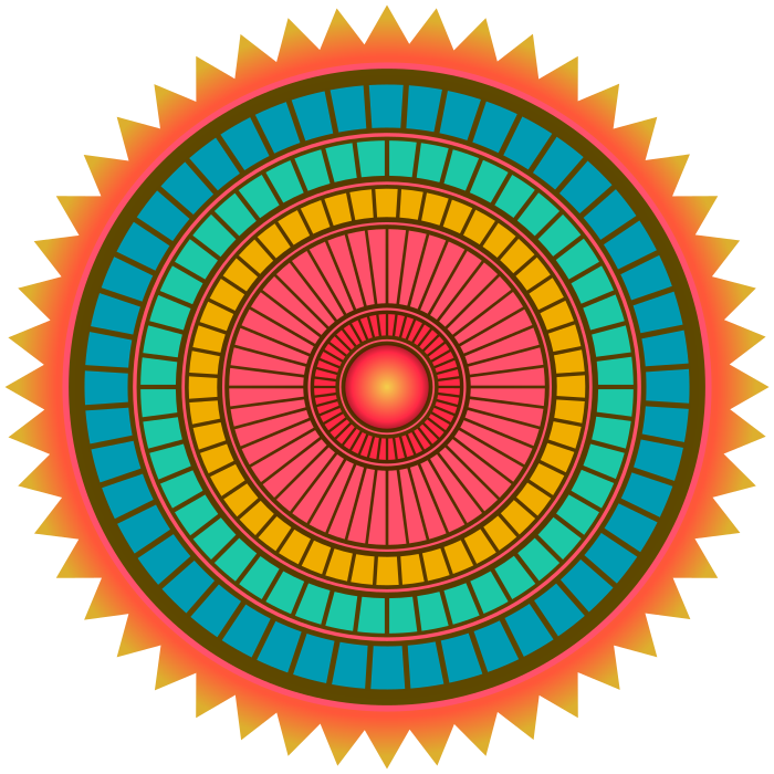 This features a large, colorful circle with an abstract design. The design is made up of multiple layers, each featuring different colored rectangles. These rectangles are arranged in various patterns and create a visually striking composition. The colors used in the design include red, yellow, blue, green, orange, and brown, making it a vibrant and lively piece of artwork. The circle's shape is prominent, with its edges slightly curved outward to give it a more dynamic appearance. Overall, this abstract design showcases an impressive blend of colors and shapes that create a captivating visual experience.