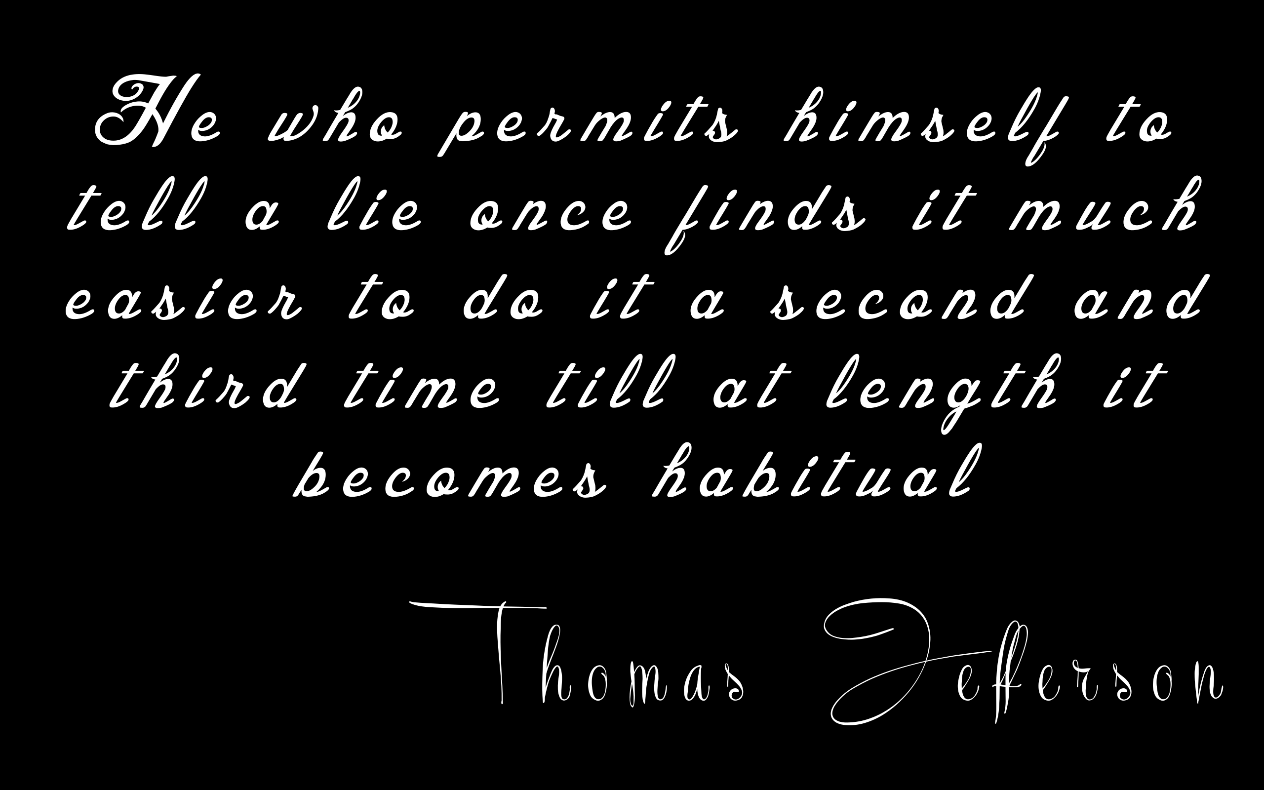 This features a quote by Thomas Jefferson, who was an American politician and the third President of the United States. The quote is written in white on a black background, making it stand out against the darker backdrop. It reads: "He who permits himself to tell a lie once finds it much easier to do it a second and third time till at length it becomes habitual." This quote highlights the importance of honesty and integrity, as well as the potential consequences of lying. The message is clear and straightforward, emphasizing the need for individuals to be truthful in their daily lives.