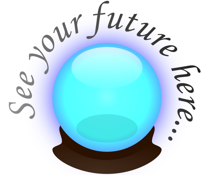 This features a blue crystal ball with the words "see your future here" written around it. The ball is placed on top of a brown surface, giving it an earthy appearance. The overall design of the image suggests that it could be used as a motivational or inspirational poster to encourage people to look towards their future and make positive changes in their lives.