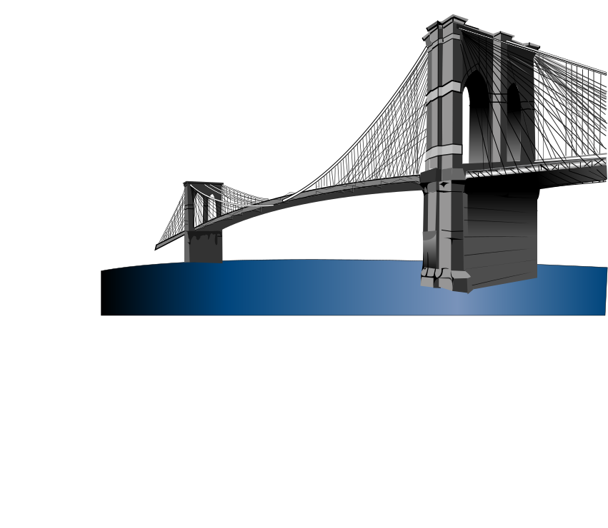 This features a black and white drawing of the Brooklyn Bridge, which is an iconic suspension bridge that spans across the East River in New York City. The bridge has a large arched structure with cables supporting it, making it a symbol of the city's engineering prowess. Below the bridge, there is a body of water, likely representing the East River, which adds to the overall beauty and significance of this architectural marvel.
