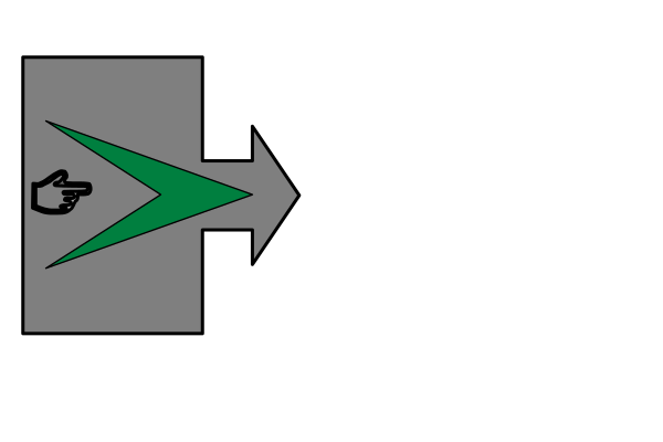 This features a gray colored sign with two arrows on it. The inner arrow is green, and there is also a hand icon pointing to the right side of the sign. This design suggests that the sign is meant to guide people in the direction they should go or indicate an action they need to take. The simplicity of the sign's color scheme and layout makes it easy for viewers to understand its intended message, regardless of their language or background.