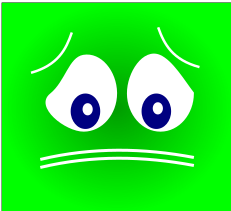 This features a green square with blue eyes, giving it an expressive and sad appearance. The square's eyes are wide open, conveying a sense of concern or worry. This emotion is further emphasized by the fact that the eyes appear to be rolling upwards, adding to the overall feeling of distress. The green color of the square contrasts with the blue eyes, creating an interesting visual effect. Overall, this image captures a moment of sadness and concern in a simple yet expressive way.