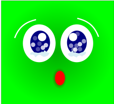 This features a green cartoon character with big eyes and a red nose, giving it an emotional appearance. It appears to be a close-up of the face, emphasizing its expressive features. The character's eyes are large and blue, adding to its animated look. The overall design gives off a playful and friendly vibe, making it suitable for various applications such as children's entertainment or advertising.