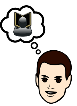 This features a man with brown hair and a beard, wearing glasses. He is smiling as he appears to be thinking about reading. Above his head, there is an illustration of a book or a thought bubble, suggesting that the man might be contemplating what to read next. This could indicate that he enjoys reading or is in the process of choosing a new book to engage with. The overall scene conveys a sense of intellectual curiosity and leisurely pursuits.