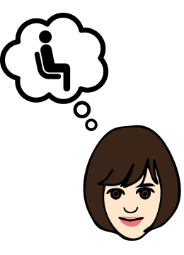 This features a woman with short hair, wearing glasses and a brown shirt. She is sitting in a chair, possibly contemplating her next move or simply enjoying some downtime. Above the woman's head, there is a thought bubble that reads "thinking about sitting." This adds an element of humor to the scene, as it implies that the woman might be daydreaming or lost in thought while seated. The overall composition creates a lighthearted and relatable atmosphere for viewers.