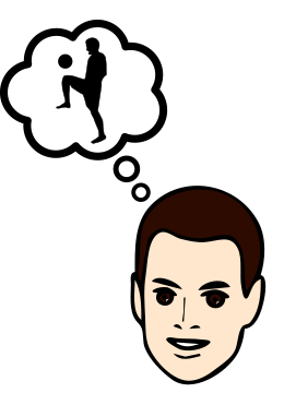 This features a man with a thought bubble above his head, suggesting that he is thinking about playing football. He appears to be smiling and has a friendly expression on his face. The man's head takes up most of the frame, indicating that this is the main focus of the image.
