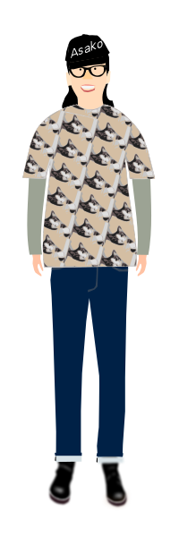 Tags: asako, cap, cat, character, clothing, denim, eyeglasses, eyewear, gray, grey, inkscape, jeans, j_alves, lightbrown, pattern, relaxed, t-shirt, tshirt, yamachem
