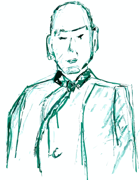This is a drawing of a man wearing a suit and tie, with his eyes wide open. He appears to be looking directly at the viewer, giving off an intense expression. The drawing is in black and white, which adds to the dramatic effect of the scene. The man's attire suggests that he might be dressed for a formal event or business meeting. Overall, the drawing captures the essence of a confident individual with a strong presence.