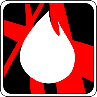 This features a red and black square with an orange flame in the center. The flame is surrounded by a white circle, giving it a distinctive appearance. The overall design of the image gives off a sense of fire or heat, possibly representing energy or passion. The combination of red and black colors adds to the intensity of the scene, making it visually striking.