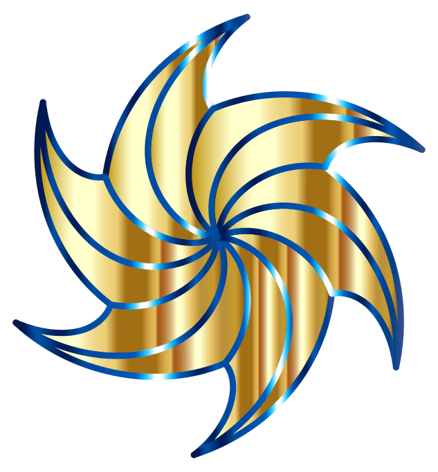 This features a blue and gold star with six edges, giving it a curved appearance. It has a shiny effect that makes the colors stand out against the background. The star is composed of golden yellow and blue hues, creating an eye-catching design. This unique pattern could be used for various purposes such as decoration or even as a logo for a company or organization.