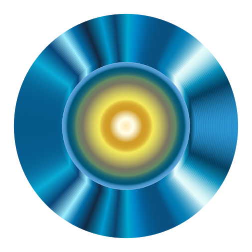 This features a blue circle with a yellow center, which appears to be an illustration of a CD-Rom. The blue color is predominant throughout the circle, while the yellow center stands out and adds a touch of contrast to the overall design. This creative representation of a CD-Rom could potentially serve as a decorative piece or an artistic expression in various settings.