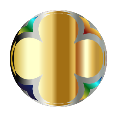This features a round, colorful object with a gold and green design. It appears to be a decorative piece or an ornament, possibly made of metal or glass. The gold and green colors create a visually appealing contrast against the background, which is also gold in color. The intricate design on this item adds depth and interest to its overall appearance.