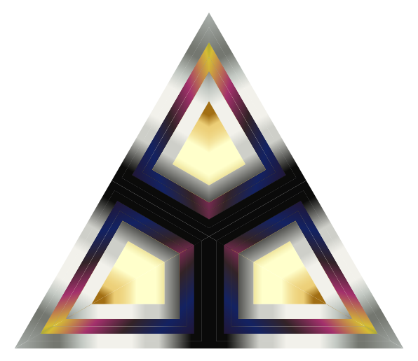 This features a unique and intricate design of a triangle with three smaller triangles within it. These smaller triangles are not connected to the main triangle, giving the overall shape an ombre appearance. The edges of the main triangle are silver in color, adding a touch of elegance to the design. This artistic piece is likely created using various colors and techniques to create the visually appealing pattern.