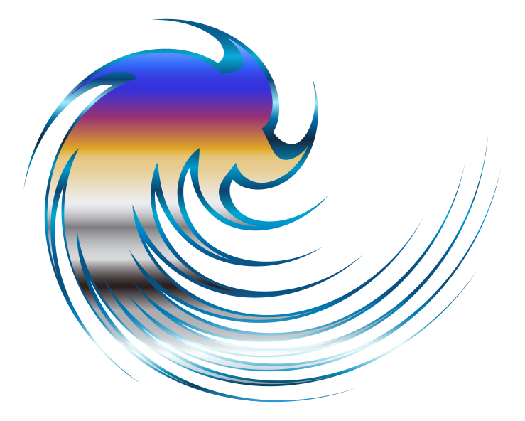 This features a blue and white swirl, which is curved starting from the right side going to the left. It appears to be a colorful spiral that varies in color as it moves through the scene. The swirl seems to be an artistic representation of a whirlpool or vortex, with its vibrant colors and dynamic shape.
