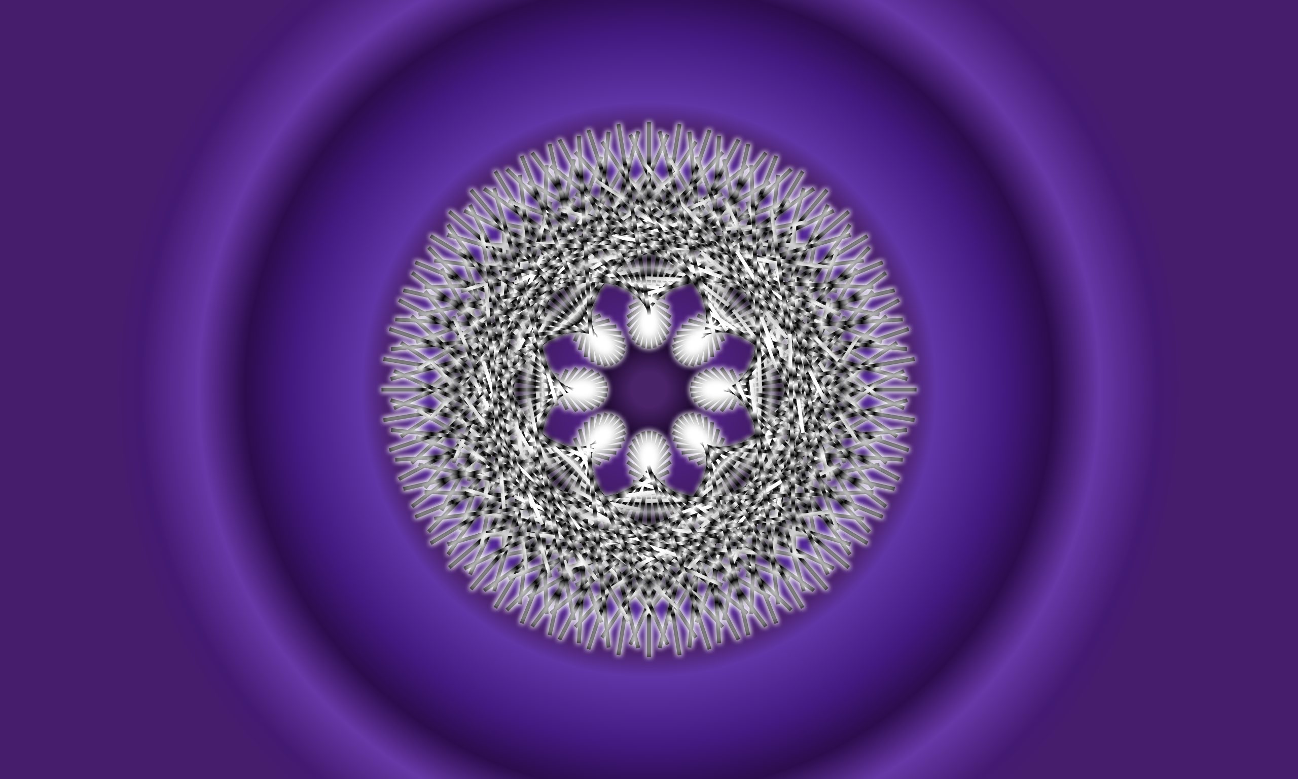 This features a purple circle with an intricate design inside of it. The design is made up of various shapes, including circles and other abstract patterns that are interconnected throughout the entirety of the circle. These shapes create a visually appealing and complex pattern that stands out against the purple background. The overall composition of the image gives off a sense of depth and complexity, making it an interesting visual piece to observe.