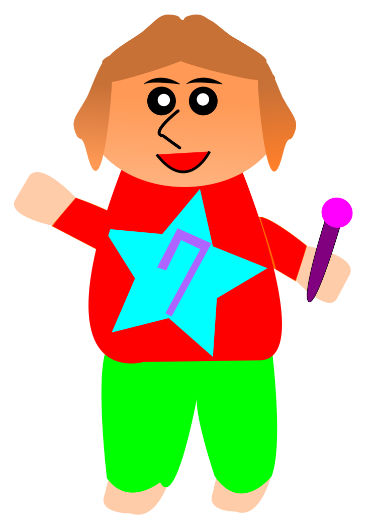 This features a cartoon character, possibly a young girl or a boy, wearing a red shirt with the number 7 on it. They are holding a microphone in their hand and appear to be singing into it. The character is also holding a wand, adding an element of fun and creativity to the scene. The overall atmosphere suggests that this could be a children's cartoon or a playful illustration.