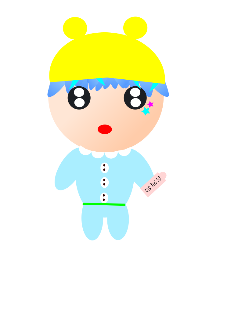 This features a small cartoon baby wearing blue pajamas and a yellow hat. It appears to be crying, possibly due to being held in someone's hand or experiencing discomfort. The baby is holding an object in its hand, which could be a toy or another item. The overall scene gives off a sense of innocence and vulnerability, as the baby seems to be seeking comfort or attention from its surroundings.