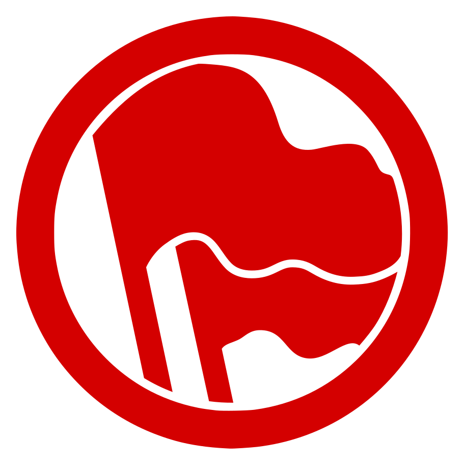 This features a red circle with an old Antifa logo inside of it. The logo is designed to resemble the flag of a country, specifically the United States. It consists of two crossed flags, one on top and another below, creating a striking visual effect. The red color of the circle complements the bold design of the flag, making it stand out as an iconic symbol.
