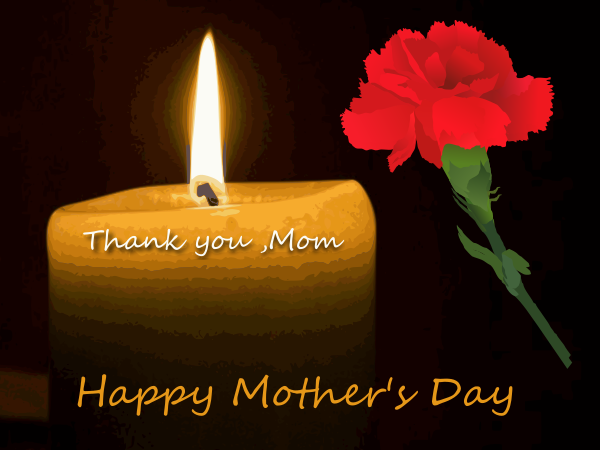This is a beautifully crafted card for Mother's Day, featuring a lit candle and a red rose. The candle has a yellow flame, adding warmth to the scene. A heartfelt message is written on the card, expressing gratitude towards mom. The card also includes a Happy Mother's Day greeting, making it an ideal gift for any mother. The image itself is adorned with a carnation, which adds a touch of elegance and color to the overall design.
