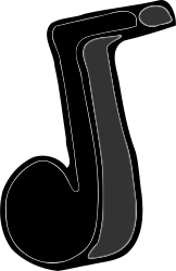 This features a black and white drawing of a musical note, specifically an eighth note. It is depicted as a pipe or a tube shape with a hole in the middle, which represents the musician's mouth when playing the instrument. The drawing appears to be a simple yet elegant representation of this musical symbol.