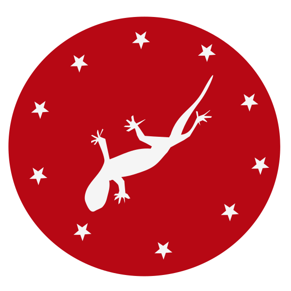This features a red circle with a white gecko lizard on it. The gecko is captured in mid-air, giving the impression of flying or jumping. It appears to be an eye-catching and unique design that showcases the gecko's agility and grace. The red background provides a striking contrast against the white gecko, making it stand out even more. This logo could potentially represent a company or brand related to lizards, reptiles, or wildlife in general.